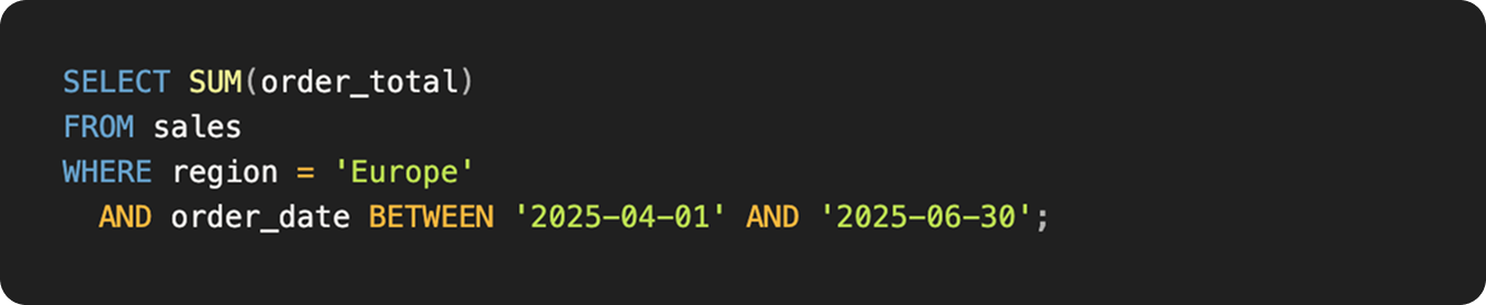 - The leader asks: "What was our total revenue from European sales in Q2?”