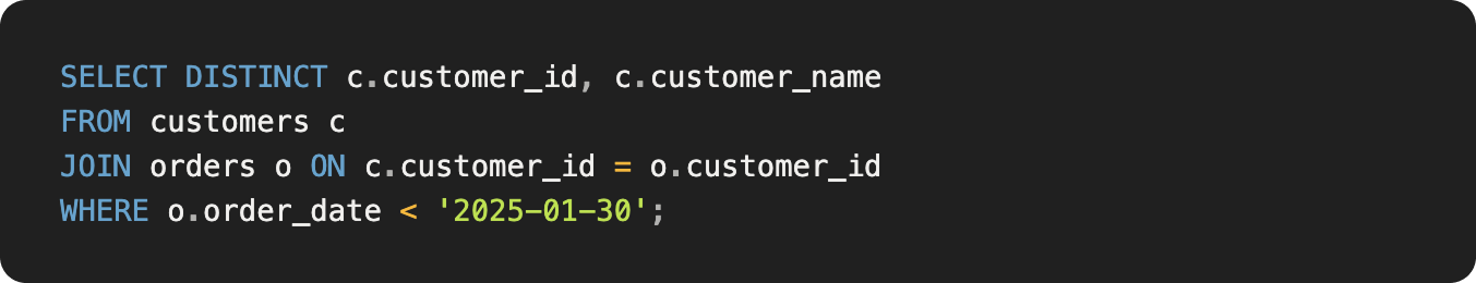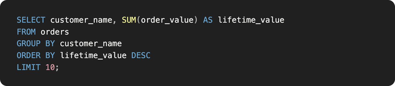 The hidden flaw: The query ignores “this quarter.” It returns all-time top customers, some of whom may have churned long ago.